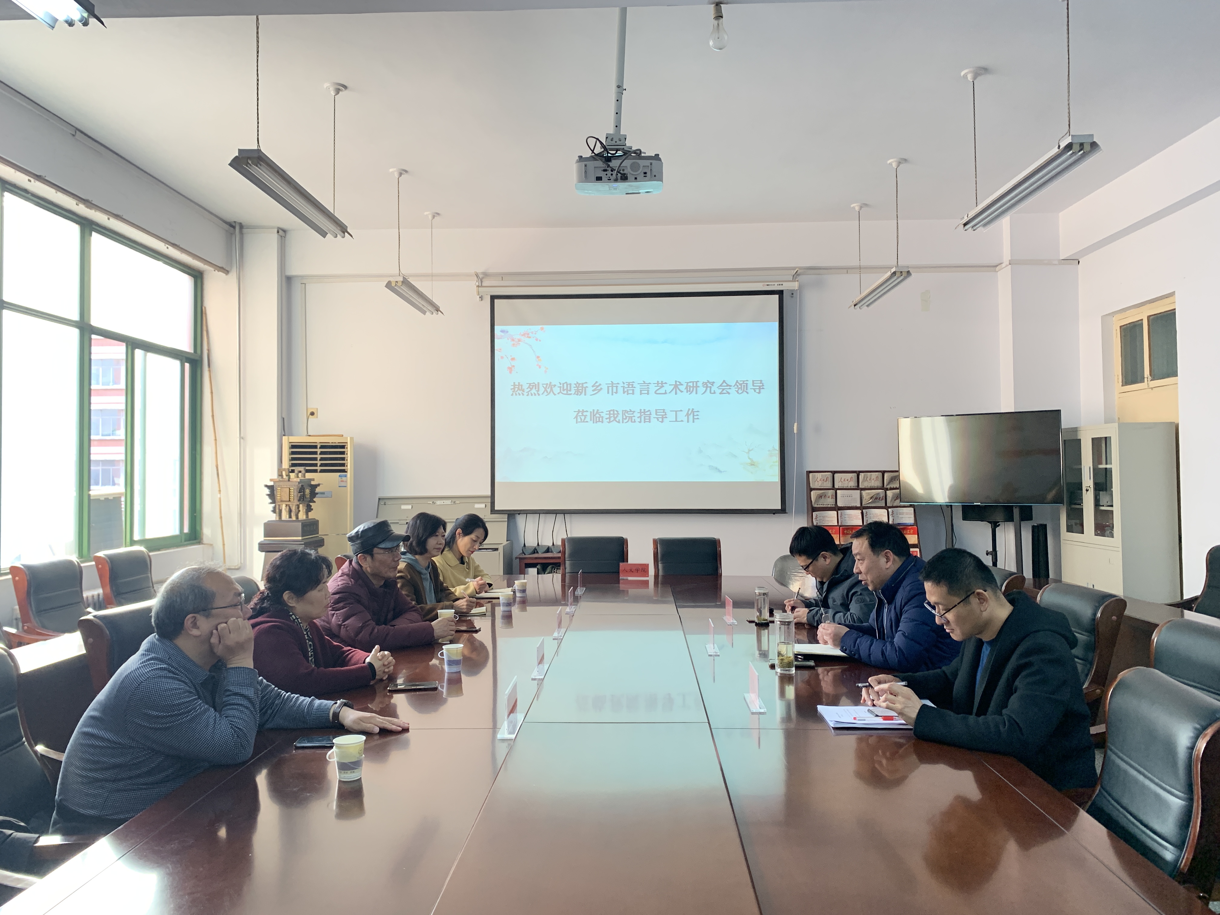 3月1日,新乡市语言艺术研究会会长许少波,副会长袁蕾、李喜仁、郑燕燕、郭熠一行5人,前来2138CC太阳集团进行座谈交流。2138CC太阳集团院长李金玉,副院长张青民、申红星,参加了此次座谈会。座谈会由李金玉院长主持。