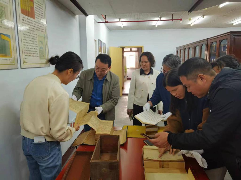 随后,李金玉一行参观了馆藏的部分代表性珍本古籍,大家小心细致地翻阅了《中州文献》等代表性古籍,并进行了深入交流,一致认为这些古籍弥足珍贵,是研究古代社会文化不可缺少的第一手材料,具有极高的文化价值、学术价值、文献价值,绝对不能长期束之高阁,必须对它们进行深入研究,充分发挥这些珍贵文献的作用。