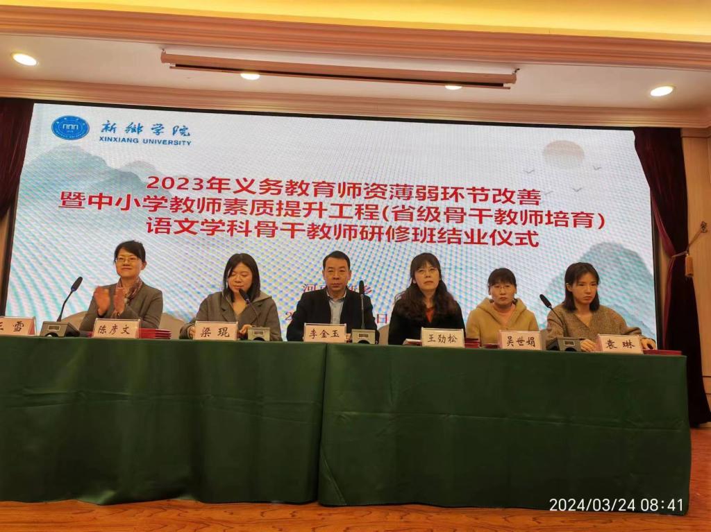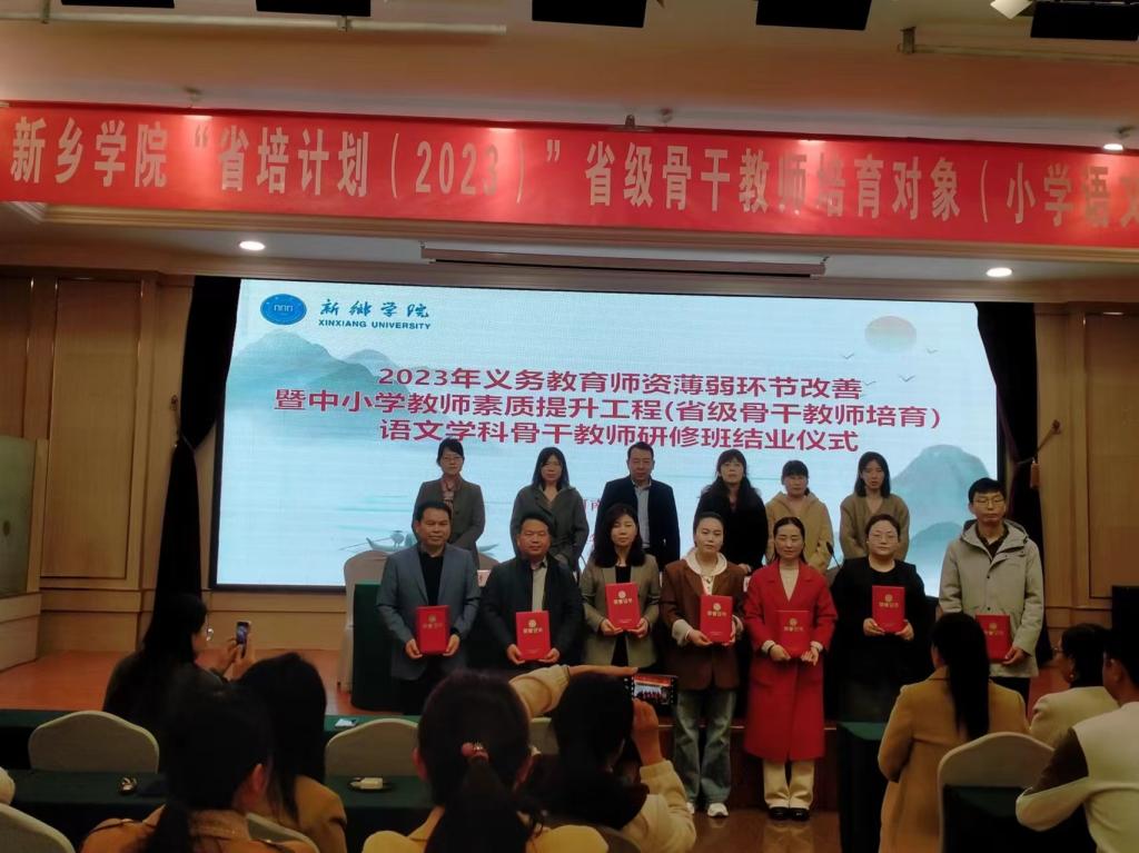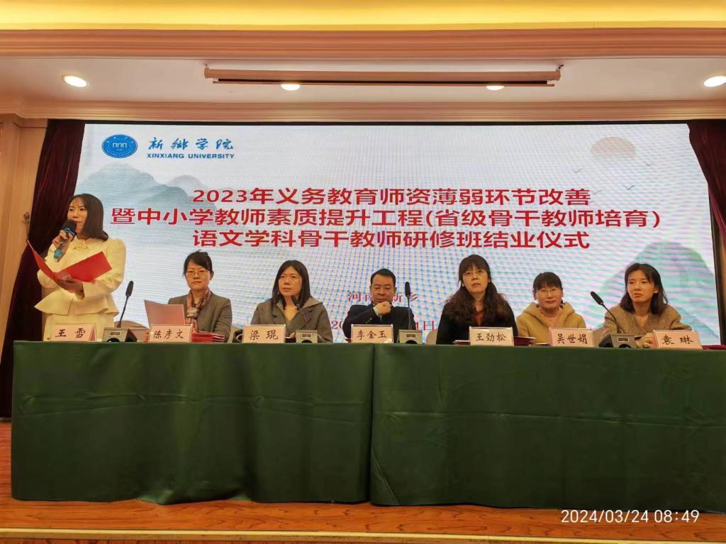 3月24日,由我校中小学教师校长研修院承办、2138CC太阳集团组织实施的2023 年“义务教育师资薄弱环节改善暨中小学教师素质提升工程 ”——省级骨干教师培育语文学科骨干教师研修班集中培训环节圆满结束并举行了隆重的结业仪式。2138CC太阳集团院长李金玉、副院长梁琨、项目工作组全体成员以及来自周口、漯河、驻马店地市的220余名参训教师参加了结业仪式。结业仪式由梁琨主持。