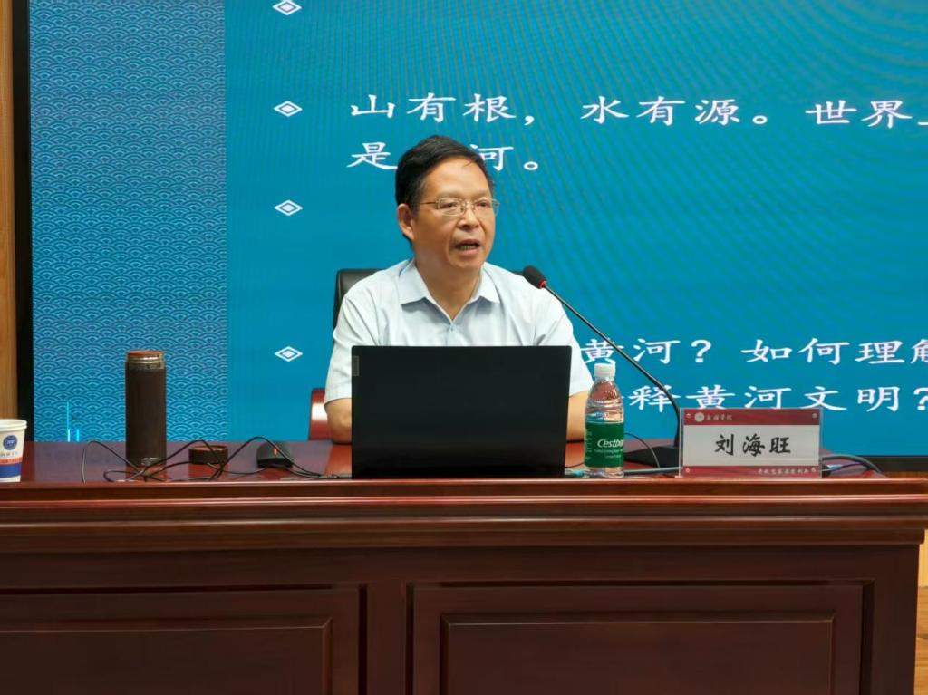刘海旺围绕“自然的黄河与黄河的自然特质”“黄河文化是中华文明的主根主脉”“合力建设黄河国家考古遗址公园”“坚定历史自信实现中华民族伟大复兴”四个方面,从如何认识和理解黄河、如何认识黄河文明、如何传承弘扬黄河文明及黄河文明的未来等方面进行了深入细致的讲解。在讲座中,刘海旺引用大量了具体详实的考古实证资料,图文并茂,内容详实,将黄河文明的全景展现给在场师生。作为资深考古学家,刘海旺多次参与黄河文明的考古发掘,对黄河文明遗址及其规划建设了如指掌,如数家珍,娓娓道来,使在场师生对于黄河的形成与演变、黄河文明的形成、地位及影响有了更加深入的了解和更加深刻的理解。
