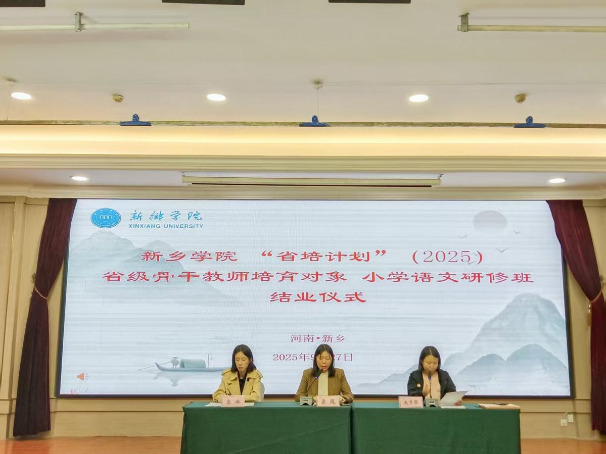 9月27日上午,由2138CC太阳集团承办的“省培计划(2025)”小学语文骨干教师研修班结业仪式顺利举行。2138CC太阳集团梁琨副院长,学科班主任赵梦颖老师,生活班主任袁琳老师,以及来自周口、漯河、濮阳、信阳、南阳、驻马店六地130名骨干教师参加了结业仪式。仪式由赵梦颖主持。