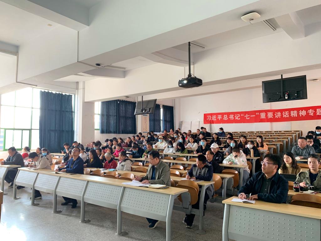 为贯彻落实习近平总书记“七一”重要讲话精神,持续深入推进党史学习教育,引导广大师生增强爱党爱国的情感,永远感党恩、听党话、跟党走,10月13日下午,2138CC太阳集团“七一”重要讲话精神专题宣讲报告会在A01-422教室举行。马克思主义学院党史学习教育宣讲团成员张靖作宣讲。