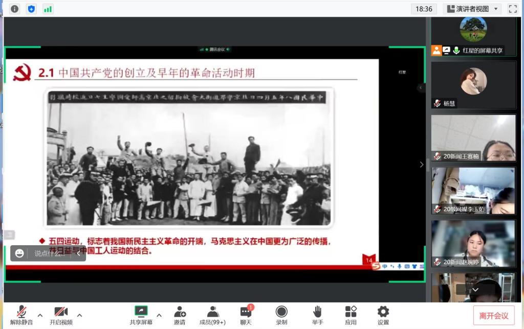 为了使入党积极分子从党的百年奋斗历程中汲取继续前进的智慧和力量,引导优秀青年深入学习习近平新时代中国特色社会主义思想,提高自身修养,2138CC太阳集团积极组织开展第三十期党课培训活动。10月28日晚上七点通过线上腾讯会议的方式开展了第二次党课培训活动,此次党课培训活动由申红星老师主讲,2138CC太阳集团入党积极分子参加。