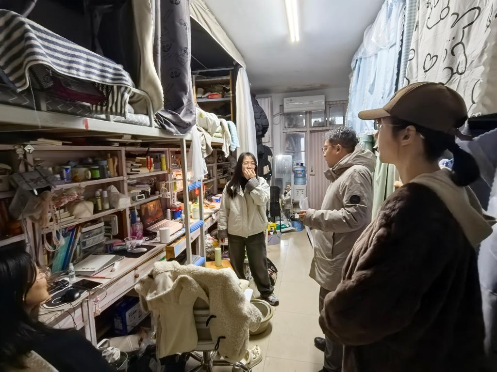 时值季节交替,安全稳定尤为重要。走访团队提醒同学们一方面务必注意防寒保暖,保持宿舍通风与卫生,规律作息,加强锻炼,做好自己健康的第一责任人。也在表达关怀的同时,细致查看了宿舍的卫生与环境,提醒大家要特别注意用电安全,做到人走断电,杜绝使用违规电器,共同维护宿舍这一“小家”的安全。