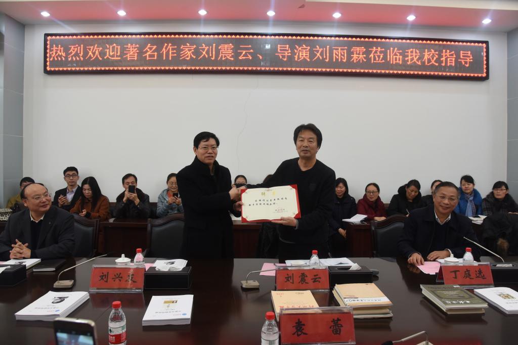 2016年12月22日,著名作家刘震云受聘为我校特聘教授,对我校刘震云研究中心的工作情况予以高度肯定,同时也高屋建瓴地对今后工作方向和研究设想提出更高更全面的要求。