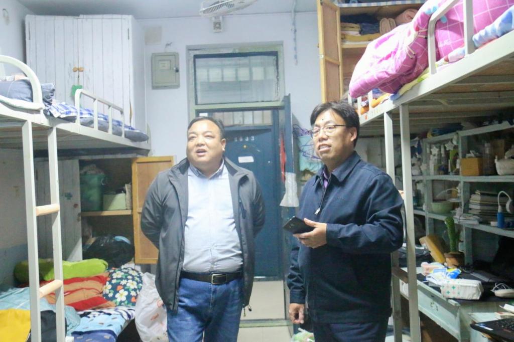 在走访过程中,领导老师与同学们进行了深切地交谈,对宿舍的各种情况进行了深入的了解,在一定程度上使得领导老师与同学们的距离更进一步。和同学们交谈时,张胜利书记和黄远伟副书记亲切地询问同学们宿舍人员的到校情况,嘱咐同学们做好防疫,积极调整自己的开学状态,对干净整洁的宿舍提出表扬,对一些宿舍存在的问题也做出了强调,同时叮嘱同学们注意用电安全,增强自律意识,高度重视宿舍卫生。两位书记对学院宿舍卫生工作寄予深切期望,希望每位同学都能在日后的宿舍生活中养成良好的学习习惯,保持优良的作风,共创和谐文明的宿舍环境。同学们纷纷感谢领导老师的关心,并表示会增强自律意识,重视宿舍安全卫生问题,营造良好的生活环境。