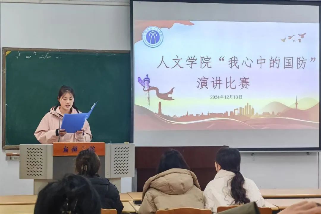 选手们依次进行演讲。选手们借助PPT、情景演绎等形式,围绕习近平强军思想内涵要义,回顾人民军队的光辉历程,聚焦国内外安全形势,抒发了他们对国防建设的所思、所感、所悟。他们以青春的热血为墨,描绘了一幅幅国防建设的壮丽画卷,用青春的激情呐喊,彰显了当代大学生的使命担当。演讲结束后,徐老师点评选手们展现出了多样的风采,演讲内容丰富,能围绕国防主题,从历史事件、现代军事力量、军人精神等多方面展开阐述,让听众对国防建设有了更直观清晰的认知,引导听众深入思考国防建设的意义和价值。最后袁琳指出,在演讲技巧上,选手们语速适中、语调抑扬顿挫,肢体语言较为自然,增强了演讲的表现力,但也存在一些不足,选手们在演讲时过于紧张,观众眼神交流方面有所欠缺,影响了演讲效果。希望选手们在今后能发扬优点,改进不足,演讲能力更上一层楼,更加深入地理解国防的意义与价值。在老师们的点评中,“我心中的国防”主题演讲比赛落下帷幕。