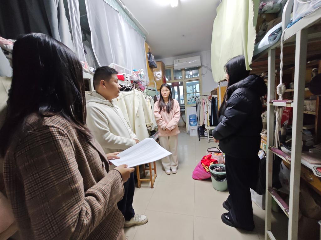 时值季节交替,安全稳定尤为重要。走访团队提醒同学们一方面务必注意防寒保暖,保持宿舍通风与卫生,规律作息,加强锻炼,做好自己健康的第一责任人。也在表达关怀的同时,细致查看了宿舍的卫生与环境,提醒大家要特别注意用电安全,做到人走断电,杜绝使用违规电器,共同维护宿舍这一“小家”的安全。