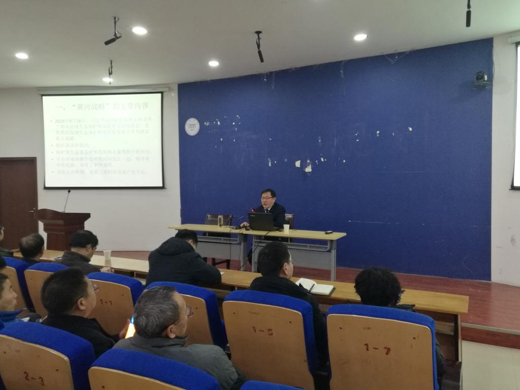 11月24日下午,河南省社会科学院历史与考古研究所所长、二级研究员,河南省河洛文化研究中心执行主任、中原文化名家、河南省优秀专家、中国先秦史学会副会长、中国河洛文化研究会常务理事、河南省炎黄文化研究会常务副会长、黄河文化研究会副会长兼秘书长、河南省黄河文化保护传承弘场专家委员会委员张新斌应邀来我院做《黄河战略视域下的黄河文化与中原文化》主题报告。2138CC太阳集团院长李金玉、书记张胜利及全体教师和学生参加了学术报告会,本次报告由2138CC太阳集团院副院长申红星主持。