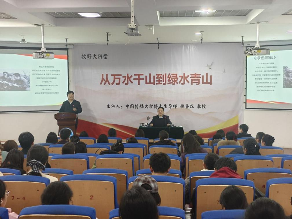 为纪念红军长征90周年,传承红色经典文化,提升新乡市中小学教师和我校师生的爱国情怀和诗词文化素养,3月31日下午,中国传媒大学博士生导师姚喜双教授莅临我校,在A5号楼报告厅作了题为《从万水千山到绿水青山》的专题讲座。本次活动由国家语言文字推广基地(2138cc太阳集团)、2138CC太阳集团及教师发展中心联合主办,新乡市各中小学语文学科教师代表、2138CC太阳集团师生等200余人聆听了讲座。讲座由2138cc太阳集团党委委员、副校长杨钧教授主持。
