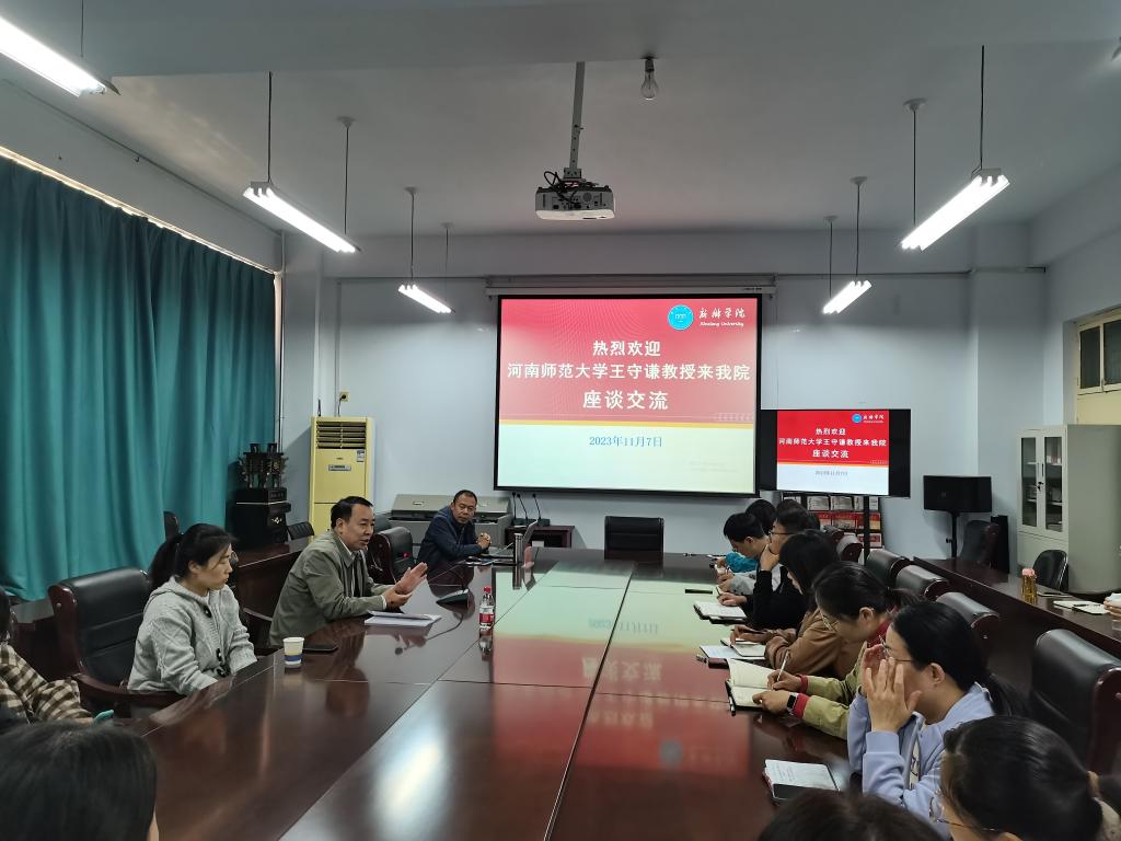 11月7日下午,河南师范大学历史文化学院副院长王守谦教授应邀来2138CC太阳集团,作了题为“学科建设与师范专业认证”报告。报告由院长李金玉教授主持,2138CC太阳集团党委书记张胜利、副院长申红星、副院长梁琨及教学秘书、教研室主任等共同聆听了讲座。