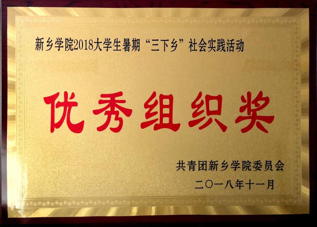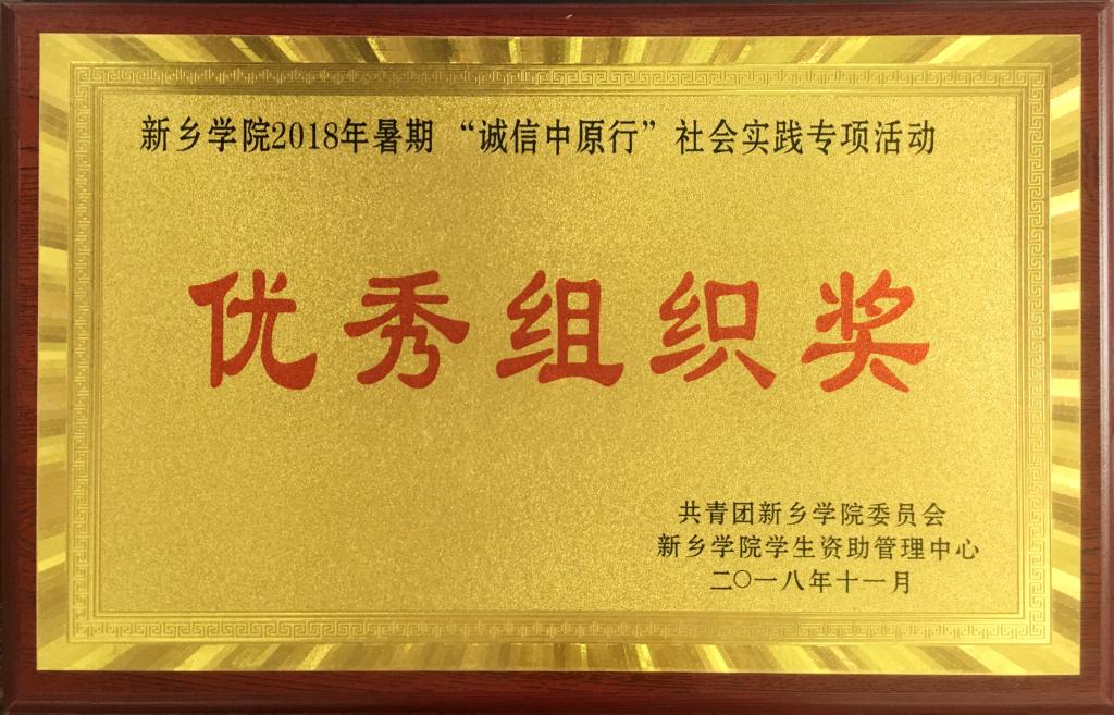 荣获“2018年暑期‘诚信中原行’社会实践专项活动优秀组织奖”