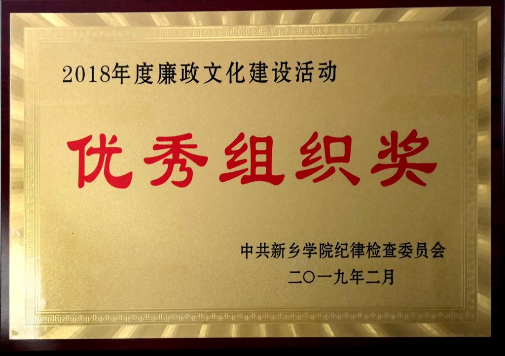 荣获“2018年度廉政文化建设活动优秀组织奖”