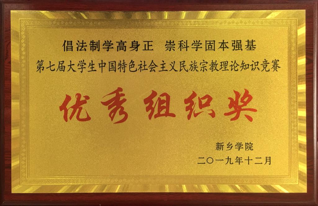 荣获“第七届大学生中国特色社会主义民族宗教理论知识精神优秀组织奖”